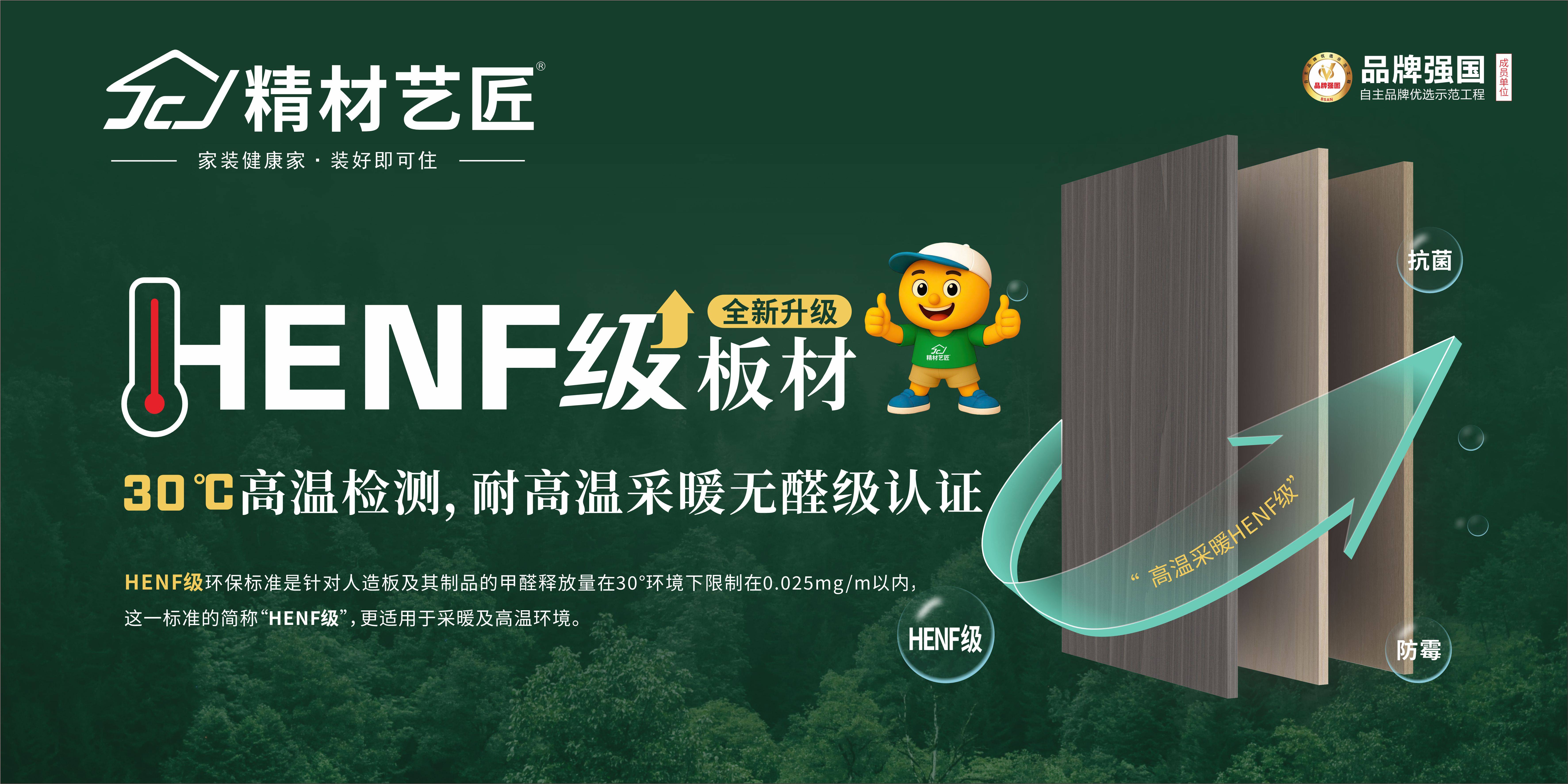 HENF级标准不仅延续了ENF级对甲醛释放量的极致控制,更针对高温环境进一步强化材料稳定性与无醛保障,确保在采暖季持续高温下仍能做到无醛释放,有效守护居家健康。“精材艺匠”凭借技术突破和品控升级,实现板材在高温场景中的安全性与环保性双重领先。