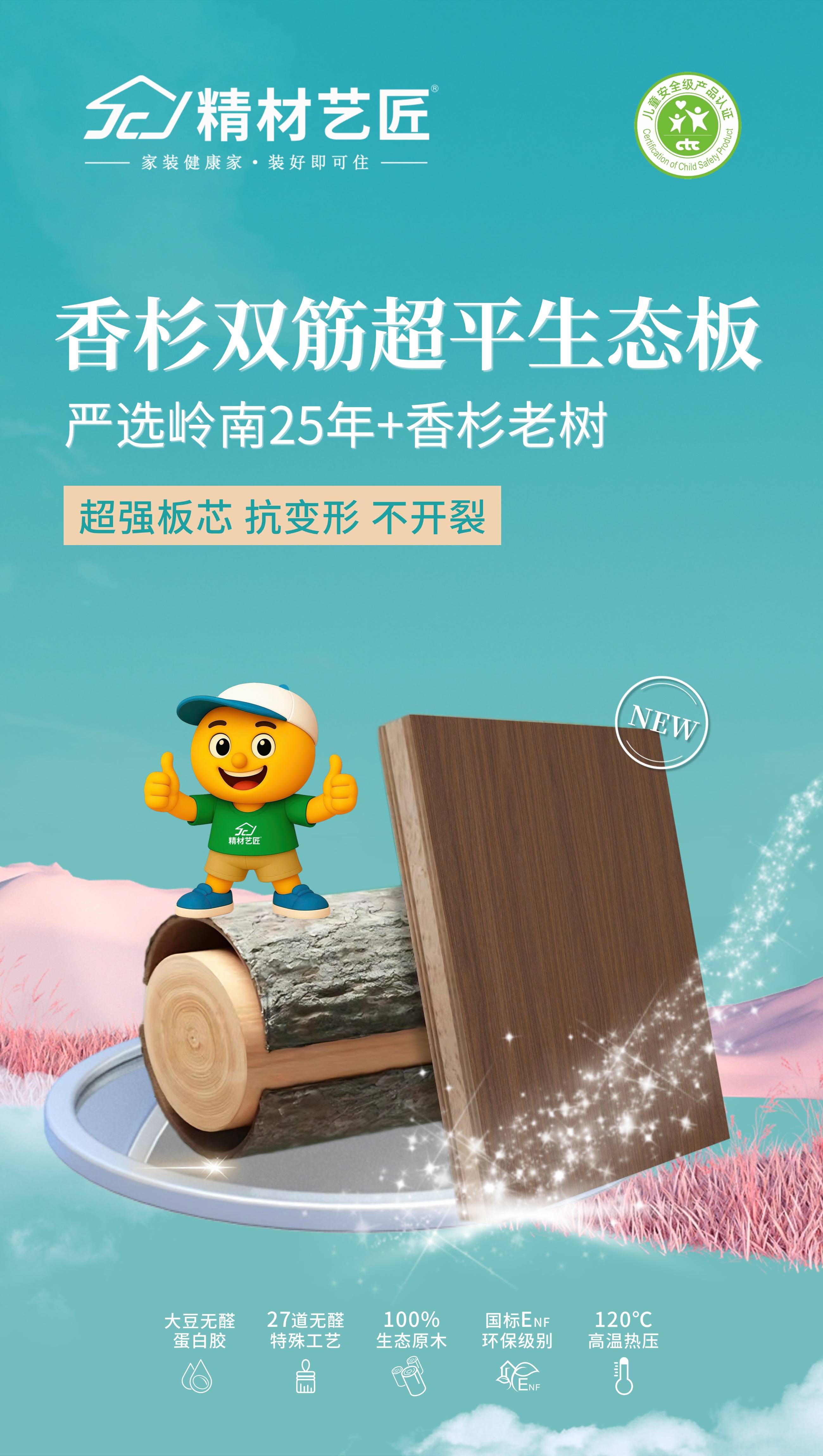 精材艺匠香杉木双筋超平生态板,以时光珍木为基,以专利科技为魂,重新定义健康板材的标杆。精材艺匠不仅提供一种材料,更倡导一种健康、自然的生活方式。精材艺匠,家装健康家·装好即可住。